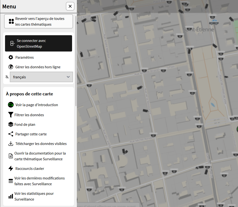 Dans la grande diversité des éditeurs OSM qui existent (on fait pas un tuto cartographie OSM ici), il en existe un bien particulier nommé mapcomplete.org qui est un éditeur spécialisable. Notamment il en existe une version dédiée à la publication des caméras de sécurité mapcomplete.org/surveillance. Cet éditeur fonctionne sur un navigateur (qu’il soit sur un ordinateur ou un mobile), ce qui vous évitera l’installation d’une application (ne nous remerciez pas). Nous recommendons de l'utiliser sur le terrain depuis un smartphone, mais vous pouvez tout aussi bien prendre des notes sur le terrain et venir faire votre travail de cartographie dans un second temps depuis un ordinateur.