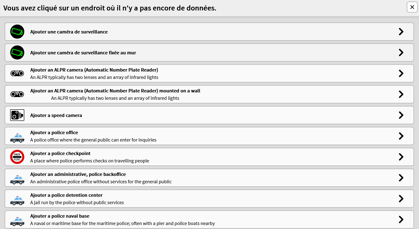 Si vous voyez une caméra déjà présente sur la carte mais qui semble mal cartographiée, vous pouvez mettre à jour les informations en cliquant dessus.